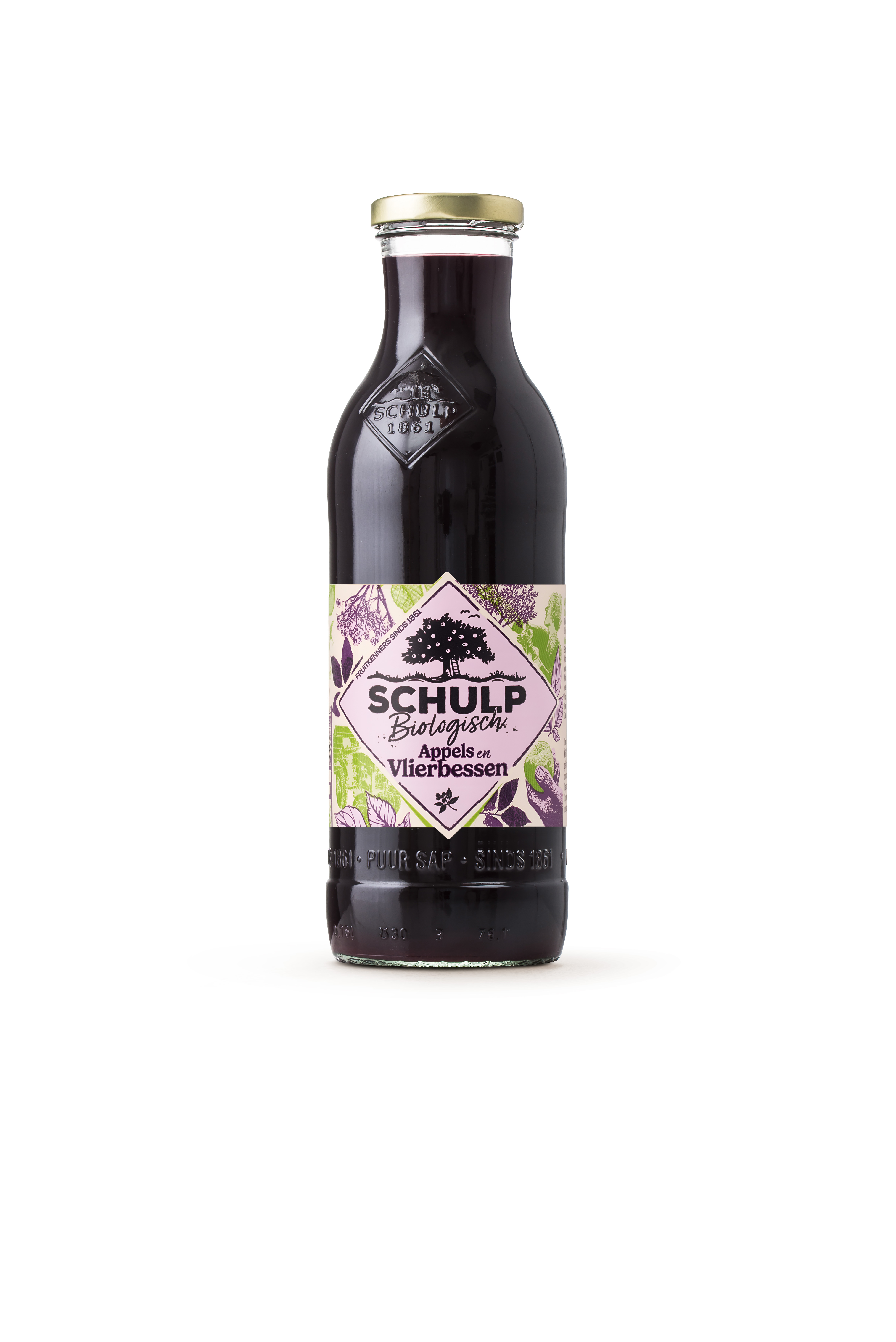 Lekker en natuurtroebel appel-vlierbessensap. Een fles vol gezond fruit, proef het zelf!